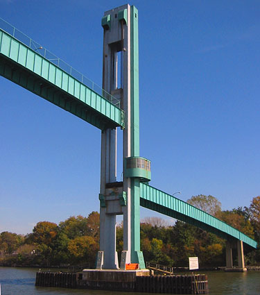 The Wards Island Pedestrian Bridge is closed for the season. This is why it’s in the “up position”.