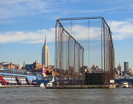 This is Chelsea Piers Sports and Entertainment Complex, a 30-acre waterfront sports village located between 17th and 23rd Streets along Manhattan’s Hudson River. This is their Golf Driving Range. The Empire State Building is off to the left.