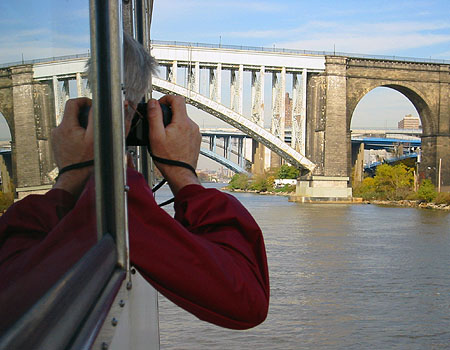 Dad taking a photo of the High Bridge (in the front) and Washington (Heights) Bridge (in the background).