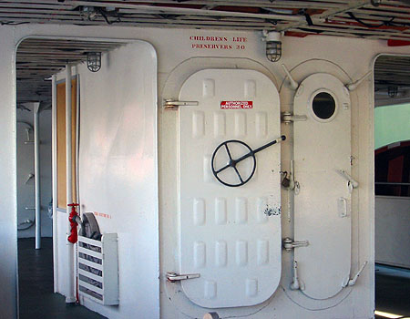 A door in the lower deck of the boat.