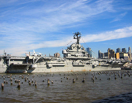 The cruise leaves from Pier 83 on West 42nd Street. It’s right next to the Intrepid Sea-Air-Space Museum. This is the USS Intrepid, an enormous aircraft carrier that is part of the museum.